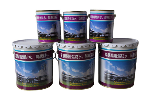 CPU聚氨酯阻燃防水涂料,是以帶有異氰酸基(一NCO)的化合物作為主劑(A組分) 和以軟化劑、防老劑、阻燃劑、填充劑等經特殊加工的硫化劑為固化劑(B組分),構成雙組份的高分子涂膜材料。